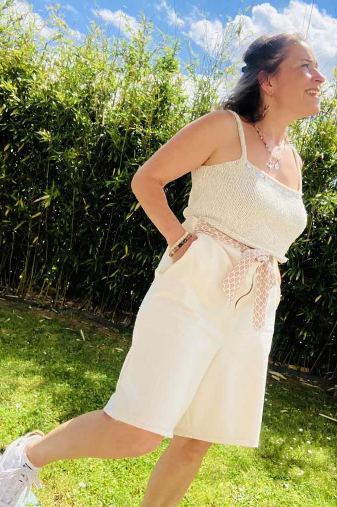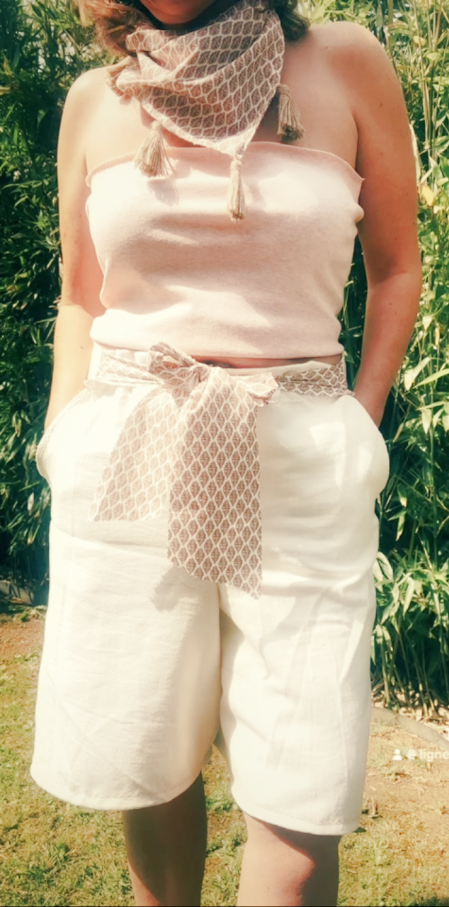 Large et élégant il est très agréable à porter. Une fermeture ainsi qu’une ceinture permet de fermer ce joli bermuda frais et classe.