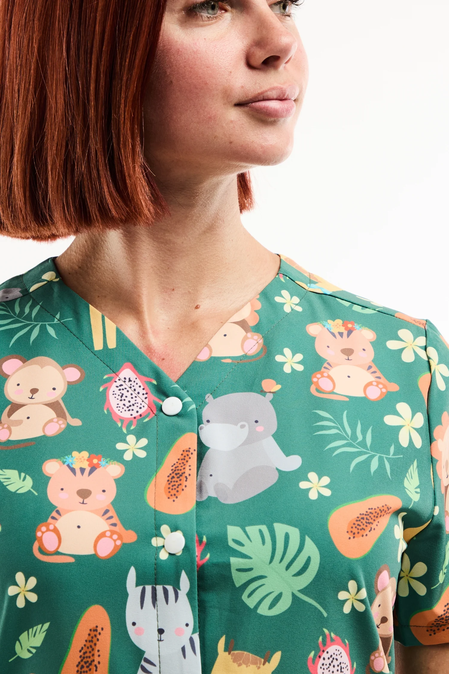 Blouse Médicale Imprimée Jungle – Animaux de la Savane Vert