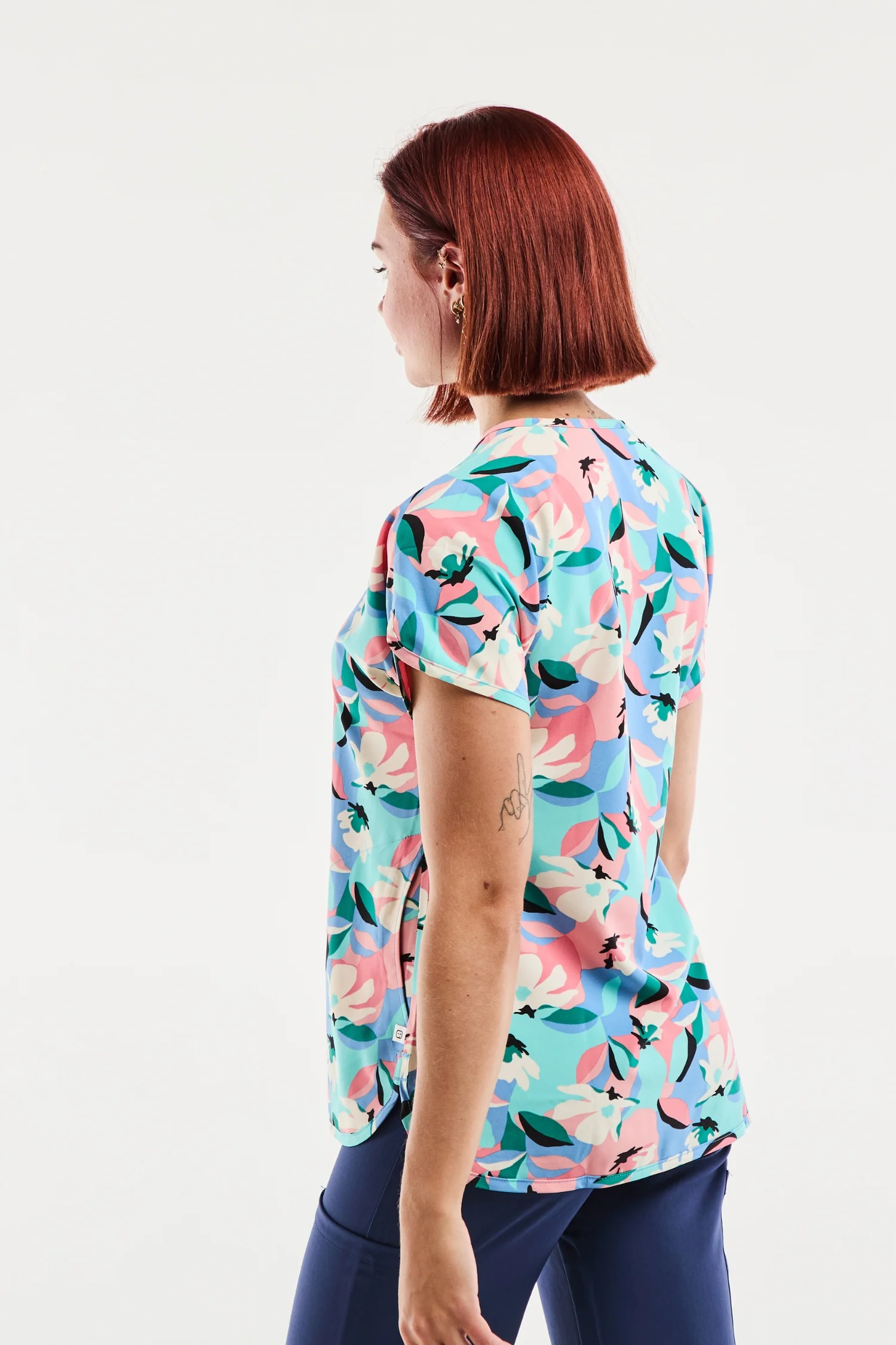 Tunique médicale manches courtes 92% Polyester / 8% Spandex aux motifs modernes pour égayer vos patients.