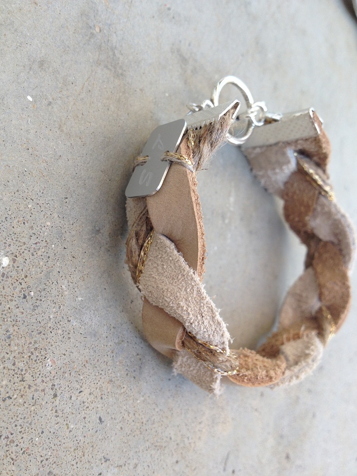 Bracet en cuir biologique tréssé, corde chanvre. Entièrement réalisé en France.
