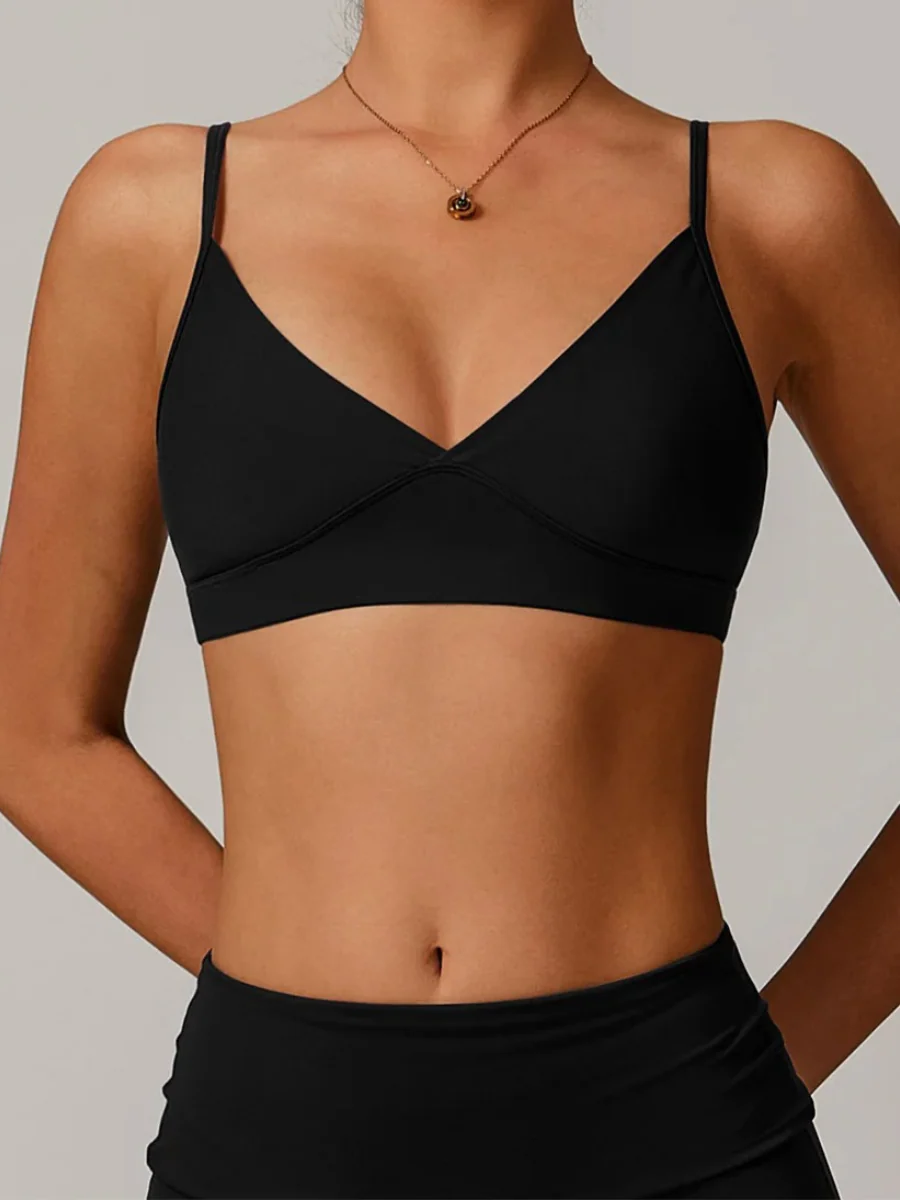 Minimaliste et flatteuse, cette brassière push-up a été pensée pour sublimer la poitrine tout en offrant un confort optimal. Son décolleté en V met délicatement en valeur le buste, tandis que ses bonnets rembourrés sculptent un galbe naturel sans armatures. Les fines bretelles réglables permettent un ajustement sur mesure, idéal pour s’adapter à toutes les morphologies. Fabriquée dans une matière douce, extensible et respirante, elle accompagne chaque mouvement avec légèreté. Que ce soit pour le yoga, le Pilates ou simplement au quotidien, elle s’impose comme un indispensable. À porter avec son legging assorti pour une silhouette fluide et féminine.