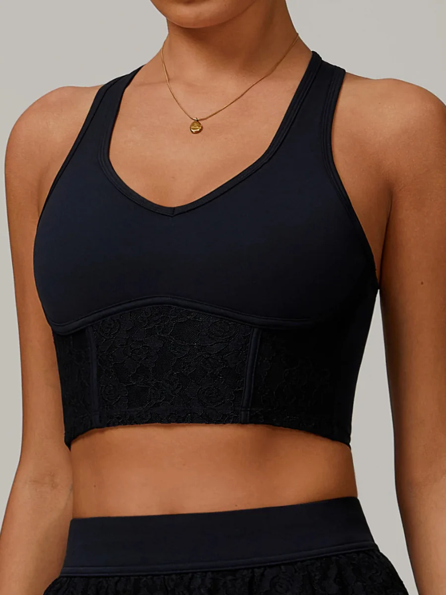 Brassière longue en dentelle et maintien actif