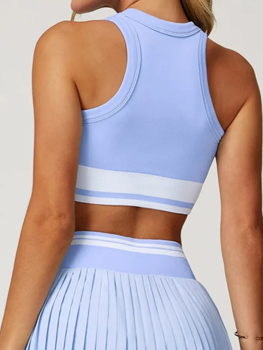 Inspirée de l’univers du tennis, cette brassière de sport combine style rétro et performance moderne. Avec son encolure montante et sa bande contrastante sous la poitrine, elle assure un maintien efficace tout en sculptant la silhouette. Sa coupe sans compromis permet une liberté de mouvement totale, idéale pour le yoga, le Pilates, le fitness ou vos entraînements en extérieur. Confortable et respirante, elle accompagne vos séances les plus intenses tout en ajoutant une touche chic et sportive à votre tenue. Associée à une jupe plissée ou un legging, elle se transforme en pièce tendance au quotidien.
