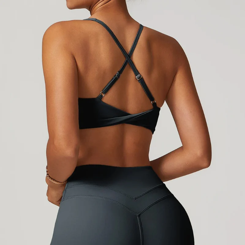 Brassière de yoga croisée au dos pour maintien optimal
