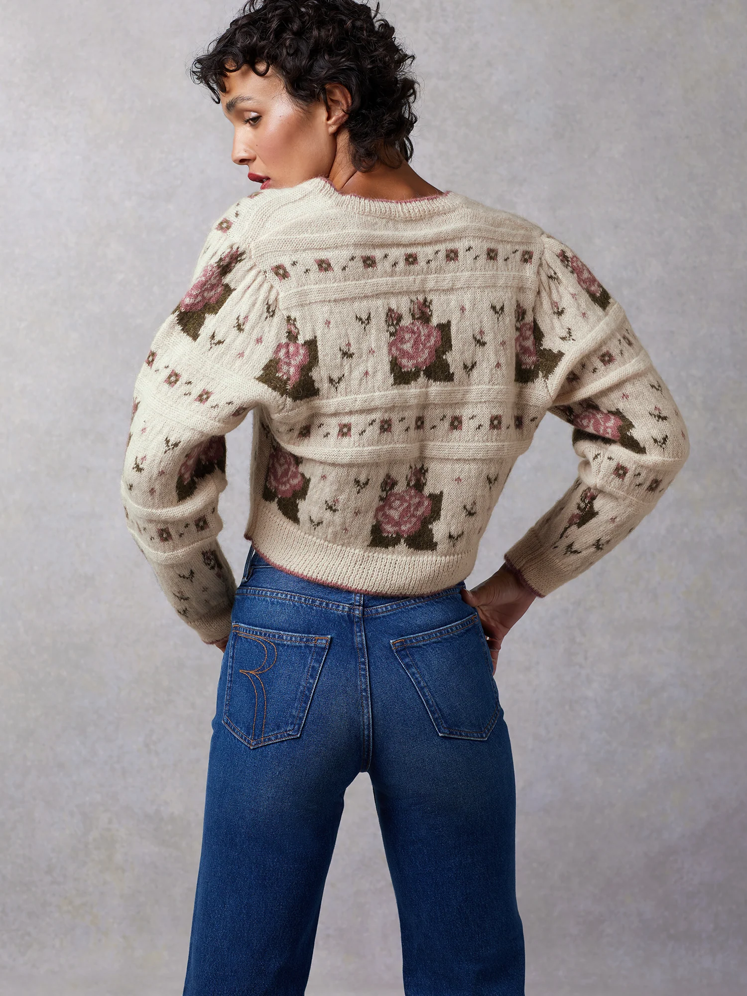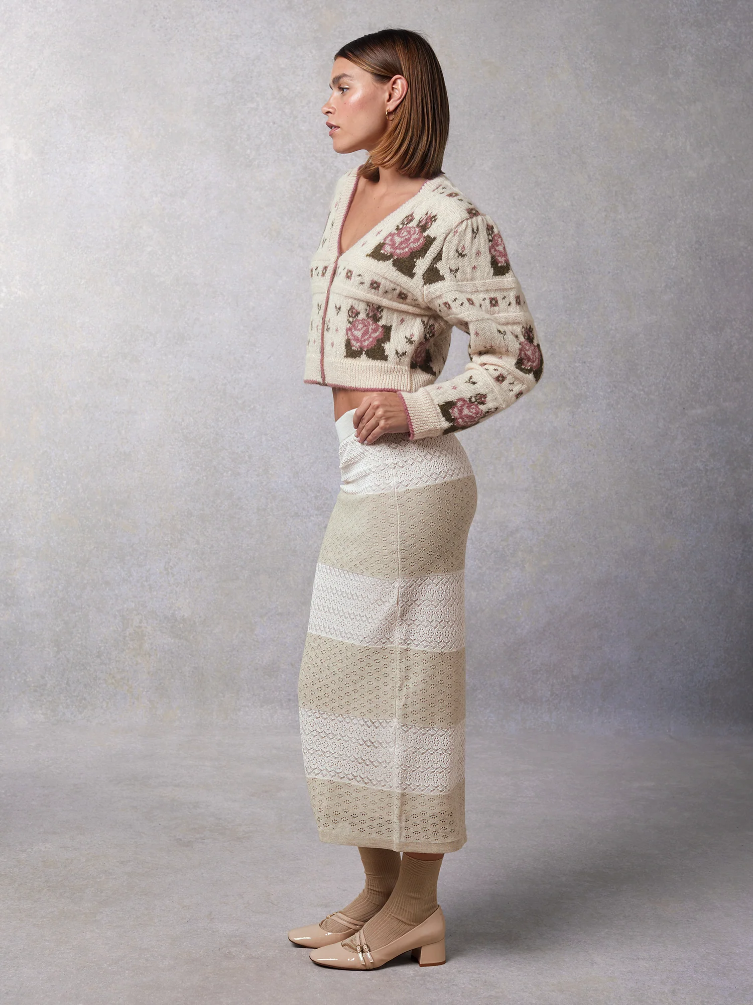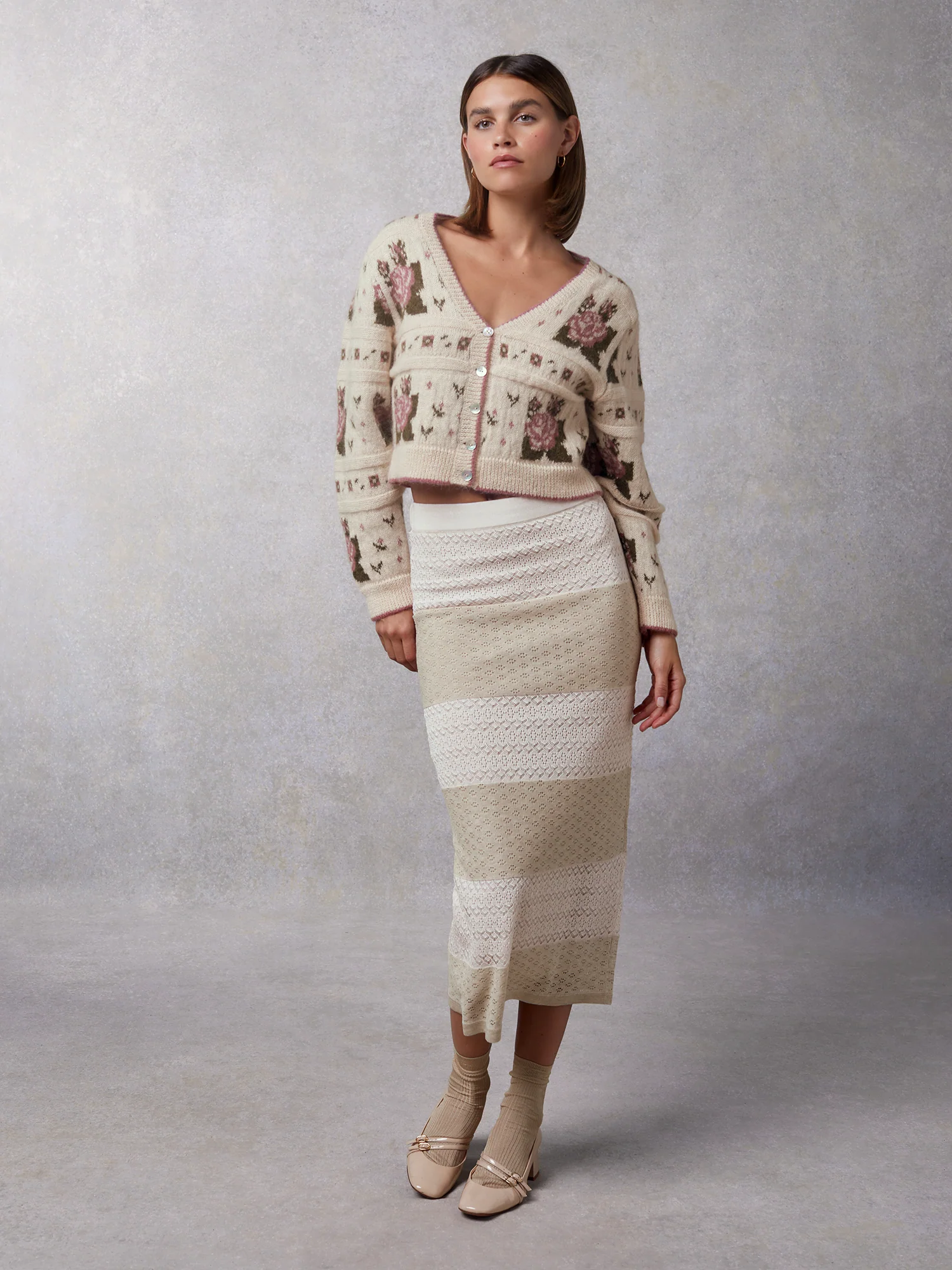 Cardigan en jacquard à manches longues.