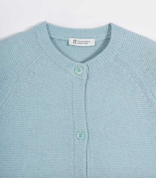 Mafalda est un cardigan court, avec boutons, réalisé en fil de cachemire recyclé, durable, bien chaud et très doux.
