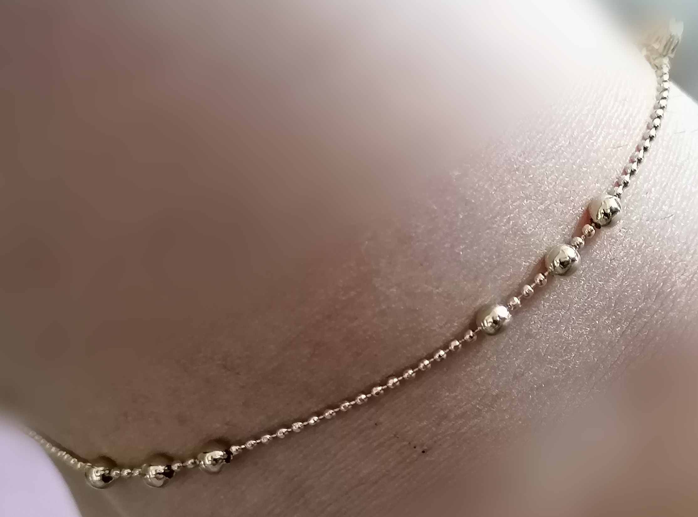 Fine chaine en laiton plaqué or de couleur Champagne avec alternance de 3 petites perles.