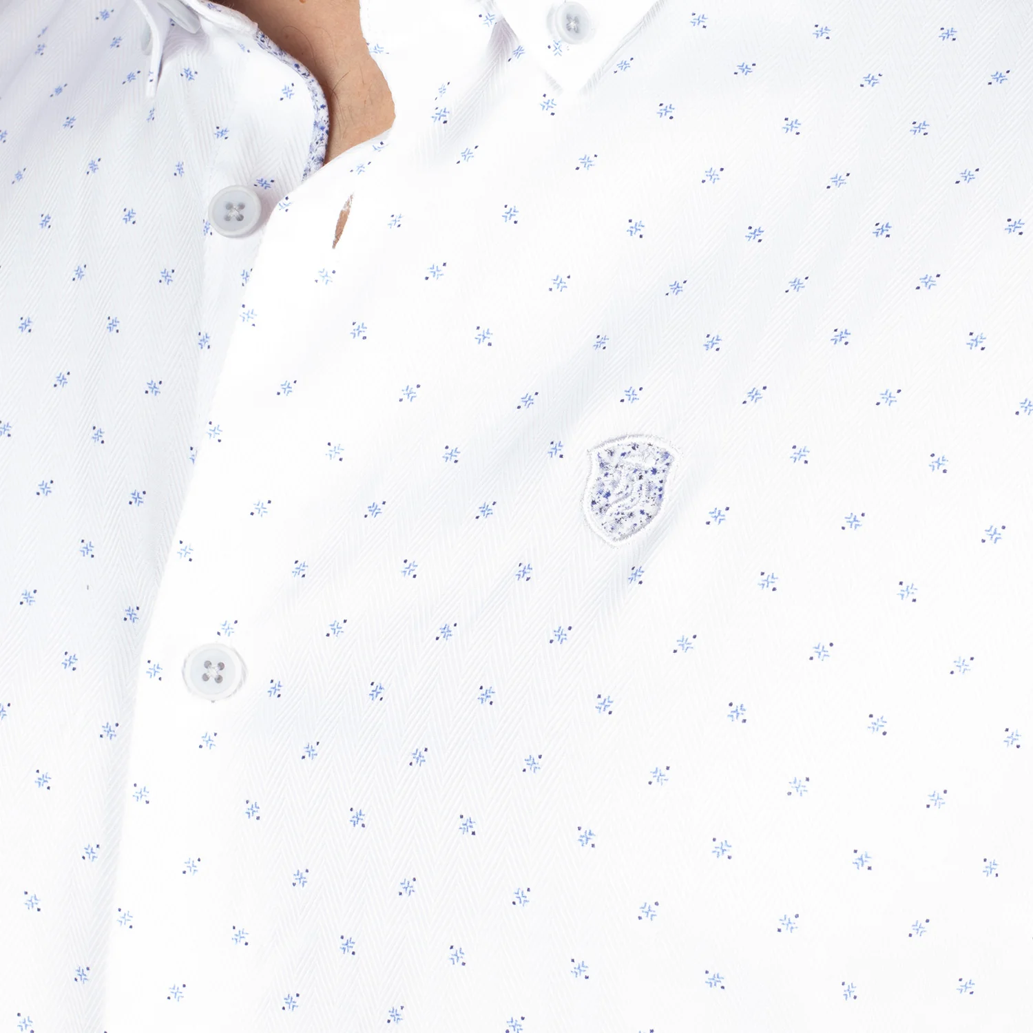 - Broderie Shilton sur le bas de la chemise