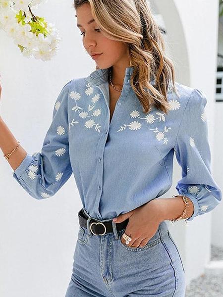 Classique et tendance, le chemisier fleuri bleu fait son grand retour dans nos dressings et on l’aime toujours autant. Le col montant volanté et le tissu en denim apportent un petit côté western féminin dans votre tenue, de quoi devenir une vraie cowgirl ! Sa matière est décorée d’un motif fleuri blanc passe-partout qui s’adapte à toutes les occasions du quotidien.