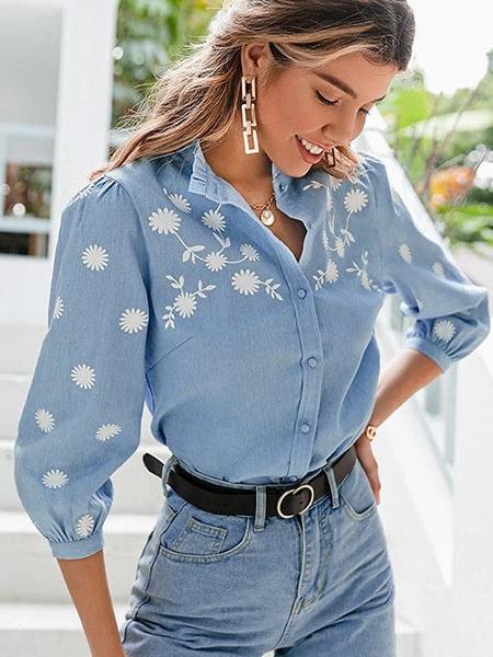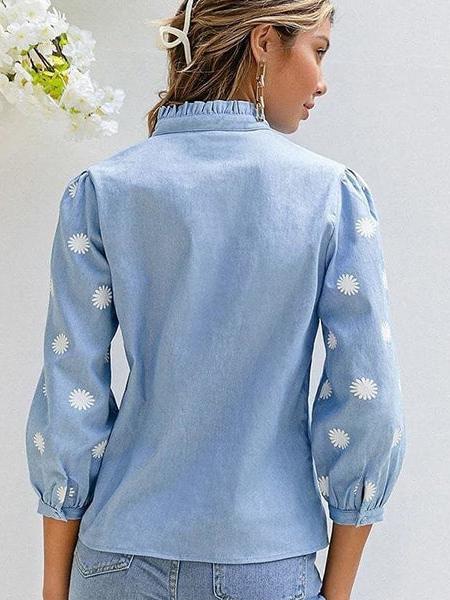 Chemisier fleuri avec tissu denim bleu pour femme