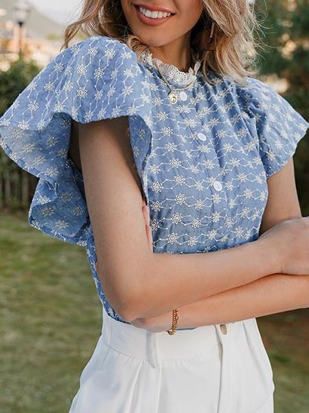 Pour souligner votre côté sage et classique, rien de mieux qu’un chemisier fleuri manches courtes. On craque pour son encolure ronde ornée d’une fine broderie et son tissu en coton imprimé de petites fleurs blanches. Rentré dans un chino pour le bureau ou par-dessus un short en jean, ce chemisier est une pièce unique qu’on aimerait toute avoir dans nos dressings.