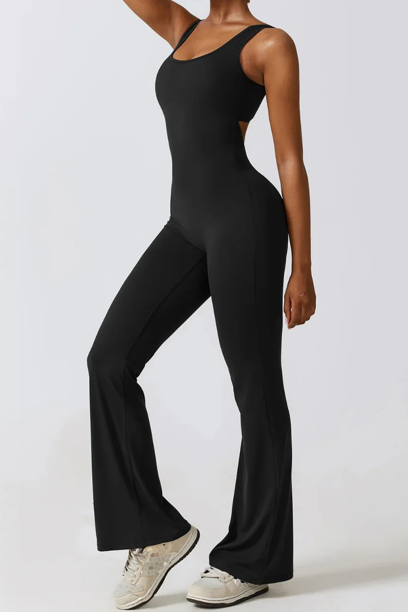 Adoptez l’élégance avec notre combinaison de yoga glamour et féminine. Son dos nu audacieux et son pantalon évasé apportent une touche chic à vos séances. Confectionnée dans un tissu confortable effet seconde peau, elle épouse vos mouvements avec grâce, tout en vous offrant une sensation inégalée de légèreté et de liberté.
