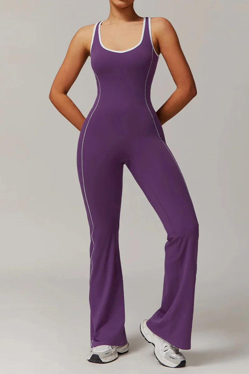 Découvrez la combinaison de yoga qui allie confort, style et performance pour accompagner chacune de vos séances. Conçue dans un tissu ultra-doux et extensible, elle épouse vos mouvements tout en sublimant votre silhouette grâce à des coutures contrastées parfaitement placées.