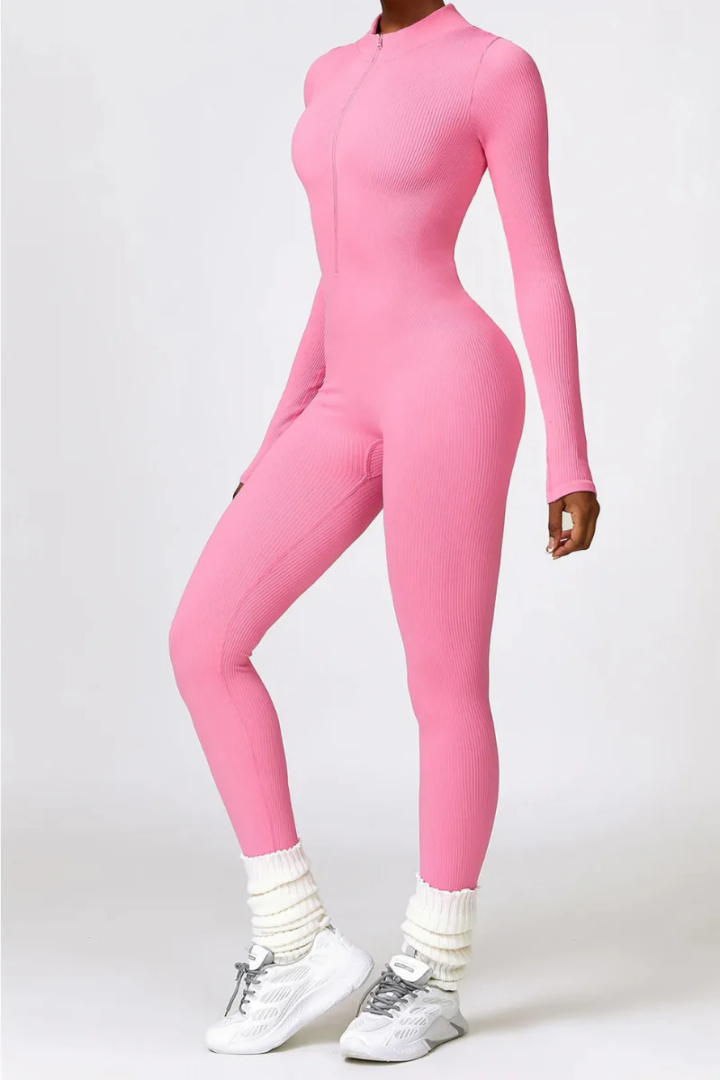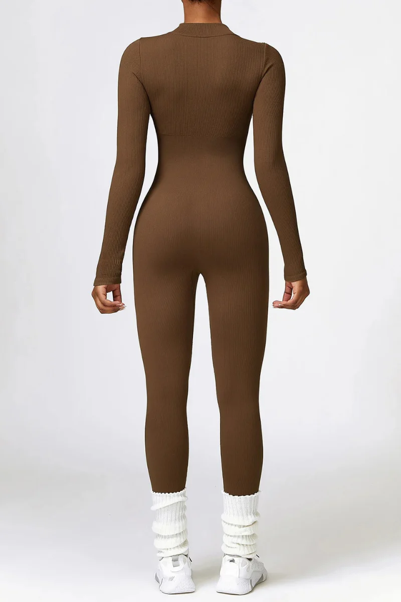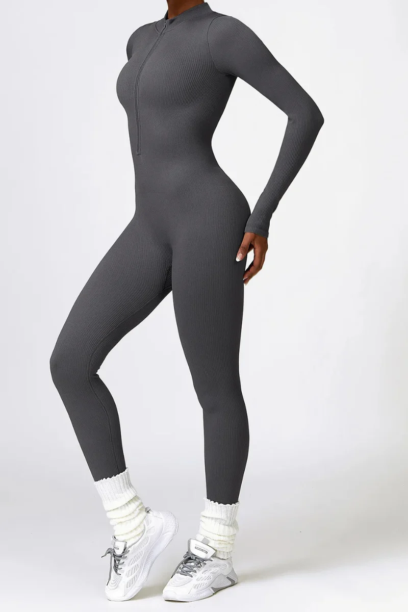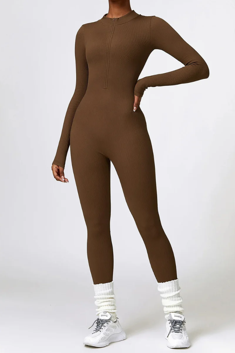 Plongez dans le confort ultime avec notre combinaison de yoga à manches longues, élégamment conçue pour descendre jusqu’aux chevilles. Sa fermeture éclair à l’avant ajoute une touche de fonctionnalité tout en permettant un ajustement facile. Idéale pour maintenir chaleur et flexibilité pendant vos séances, cette tenue moderne fusionne performance et style. Offrez-vous une expérience de yoga raffinée avec cette combinaison qui allie confort, praticité et sophistication.