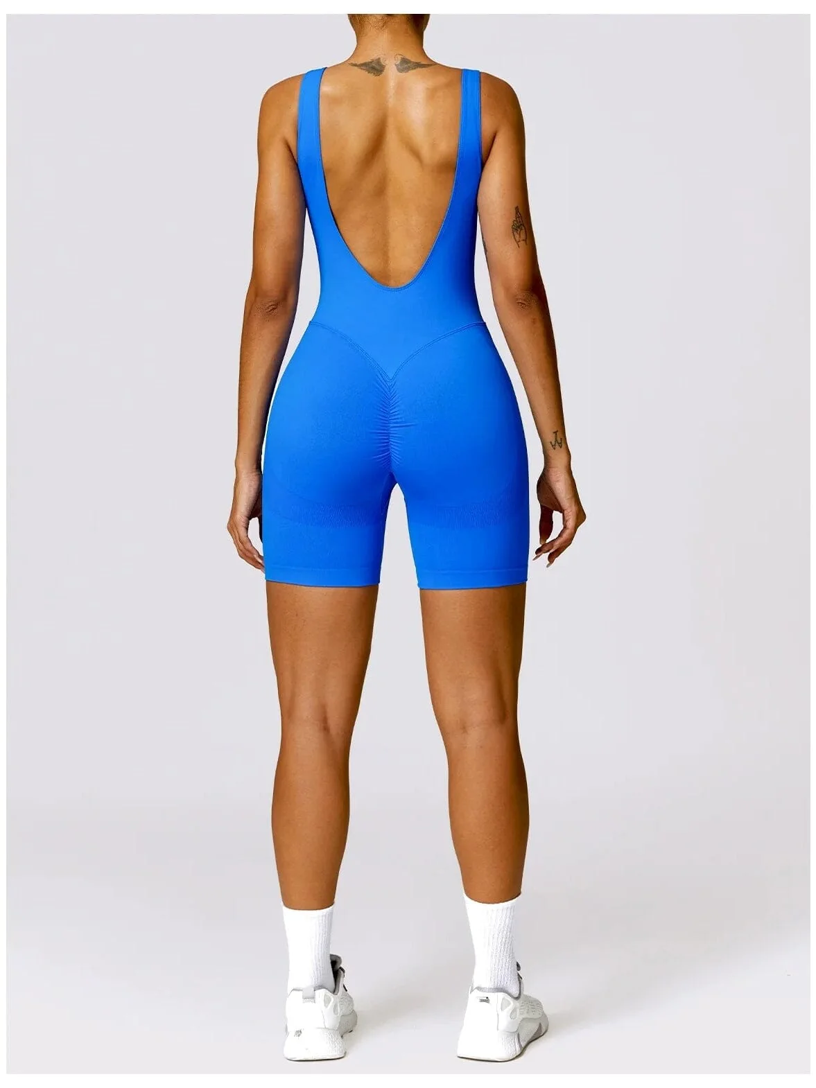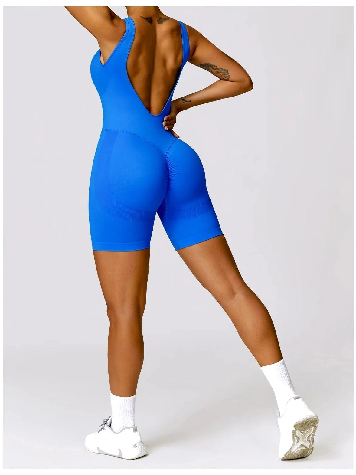 Découvrez cette combinaison de sport femme, l’alliée parfaite pour sublimer votre silhouette pendant vos séances d’entraînement. Cette combishort de sport innovante offre un effet push-up sculptant qui met en valeur vos courbes naturelles tout en vous assurant un maintien optimal.
