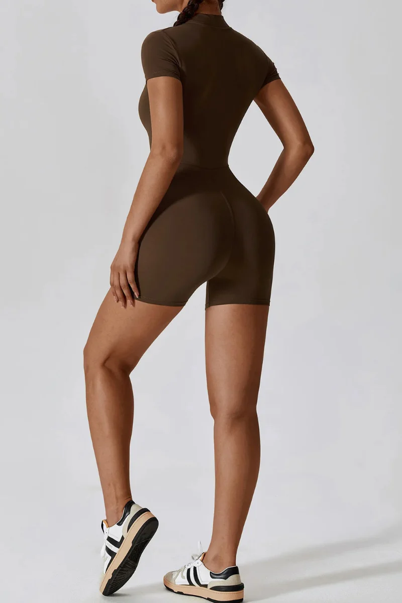 Découvrez cette combinaison de yoga élégante à manches courtes et short, idéale pour allier style et fonctionnalité. Dotée d’une fermeture éclair à l’avant, elle vous permet de dévoiler subtilement votre décolleté ou de vous rafraîchir après une séance intense. Confectionnée dans un tissu doux et extensible, elle offre un confort optimal et une liberté de mouvement parfaite. Alliez élégance et praticité avec cette tenue de sport pratique et incontournable.