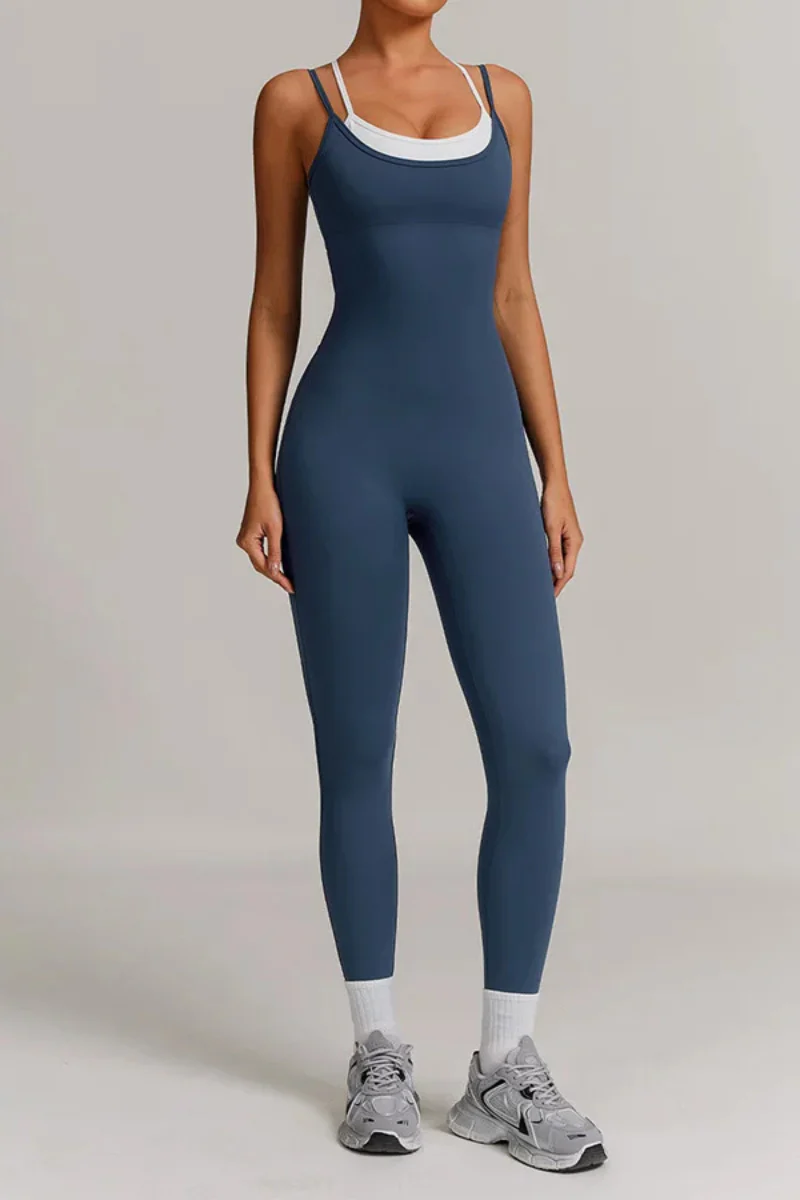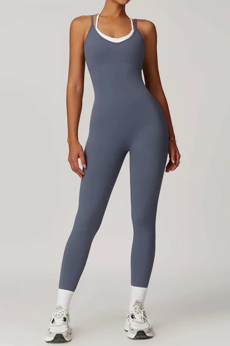 Combinaison de yoga avec brassière intégrée et dos croisé