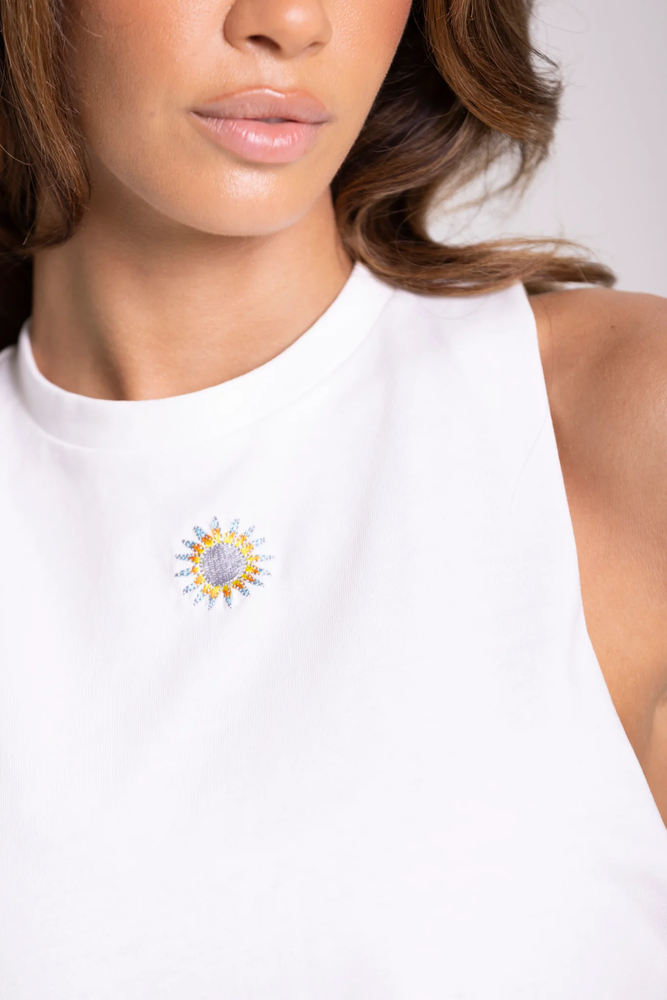 - Broderie : Logo brodé sur le crop top