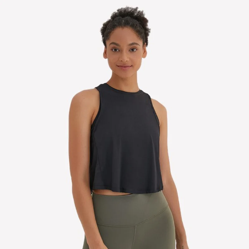 Ce joli débardeur de yoga noir en maille côtelée vous donnera un style élégant et chic. Son tissu doux et respirant vous apportera tout le confort nécessaire à une pratique de yoga réussie.