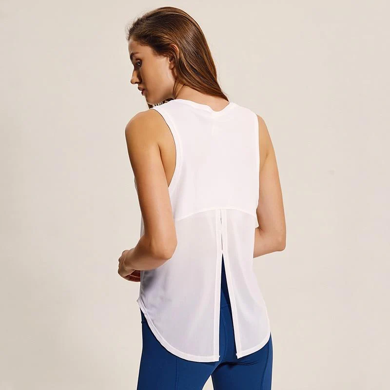 Elégant et chic, ce débardeur de yoga blanc en maille vous ira à ravir. Son tissu frais et respirant laisse une agréable sensation sur la peau et sera parfait pour les séances de yoga qui vous font le plus transpirer !