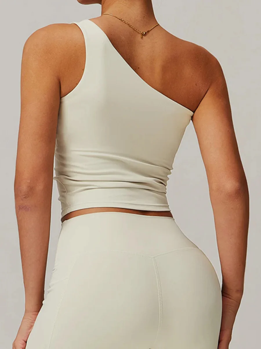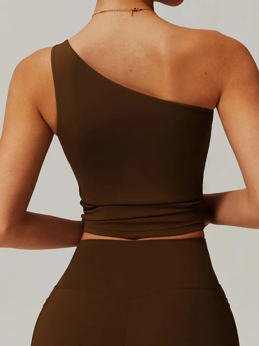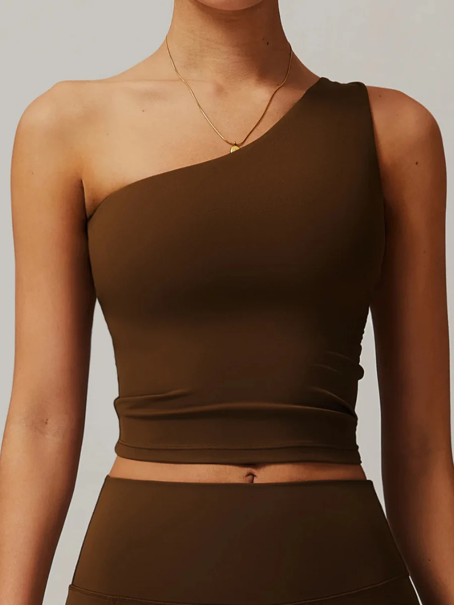 Élégant, minimaliste et ultra-confortable, ce débardeur de yoga à une épaule redéfinit la tenue de sport féminine. Son design asymétrique sublime la silhouette et dégage la nuque tout en assurant un maintien fluide. Confectionné dans un tissu stretch et respirant, il épouse le corps sans le comprimer et accompagne chaque mouvement avec souplesse. Son toucher soyeux et sa coupe seconde peau en font une pièce aussi agréable à porter sur le tapis qu’en dehors.