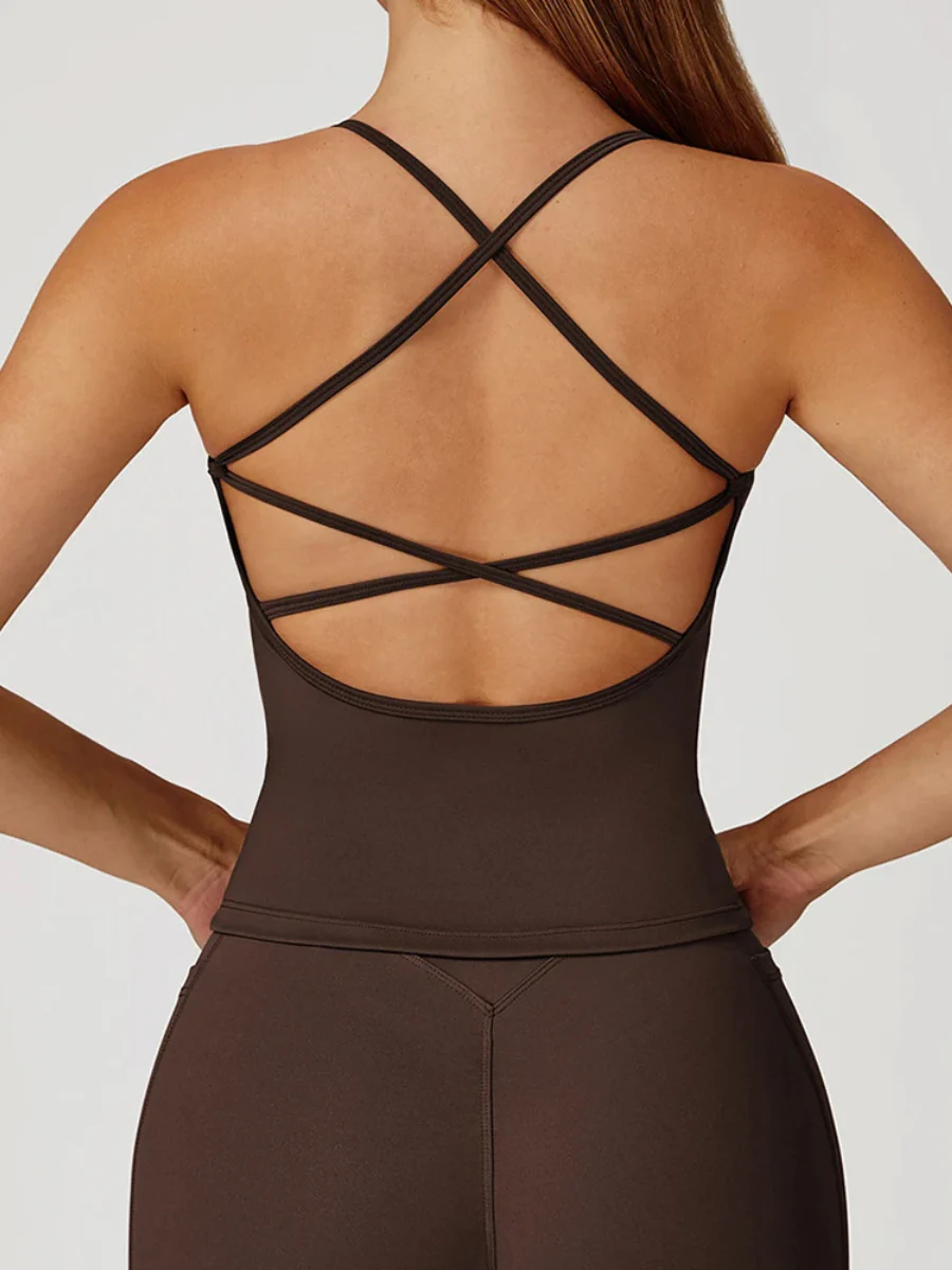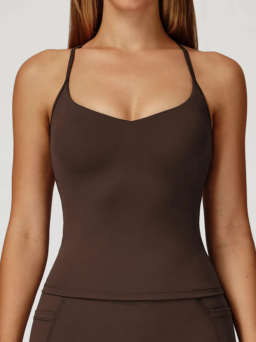 Ce débardeur de yoga à fines bretelles entrelace élégance et performance. Son dos croisé met en valeur la posture tout en libérant les mouvements, parfait pour le yoga, le Pilates ou les étirements. Conçu dans une matière douce, respirante et ultra-extensible, il épouse naturellement la silhouette et offre une sensation seconde peau incomparable. Les bonnets amovibles assurent un maintien ajusté, tandis que la coupe près du corps sublime la taille. Disponible dans des teintes modernes, c’est la pièce idéale pour passer du studio à la ville avec style.