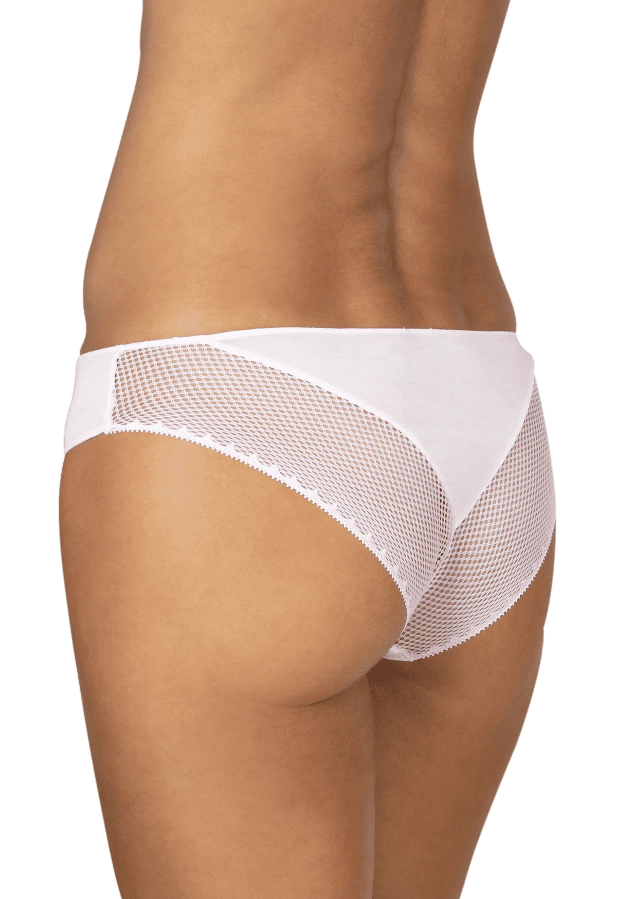 Le duo Magique est un lot de deux slips : l’un avec une dentelle florale au dos, l’autre avec de la résille. Leur forme quotidienne est rassurante. La matière en modal doux assure un confort optimal.