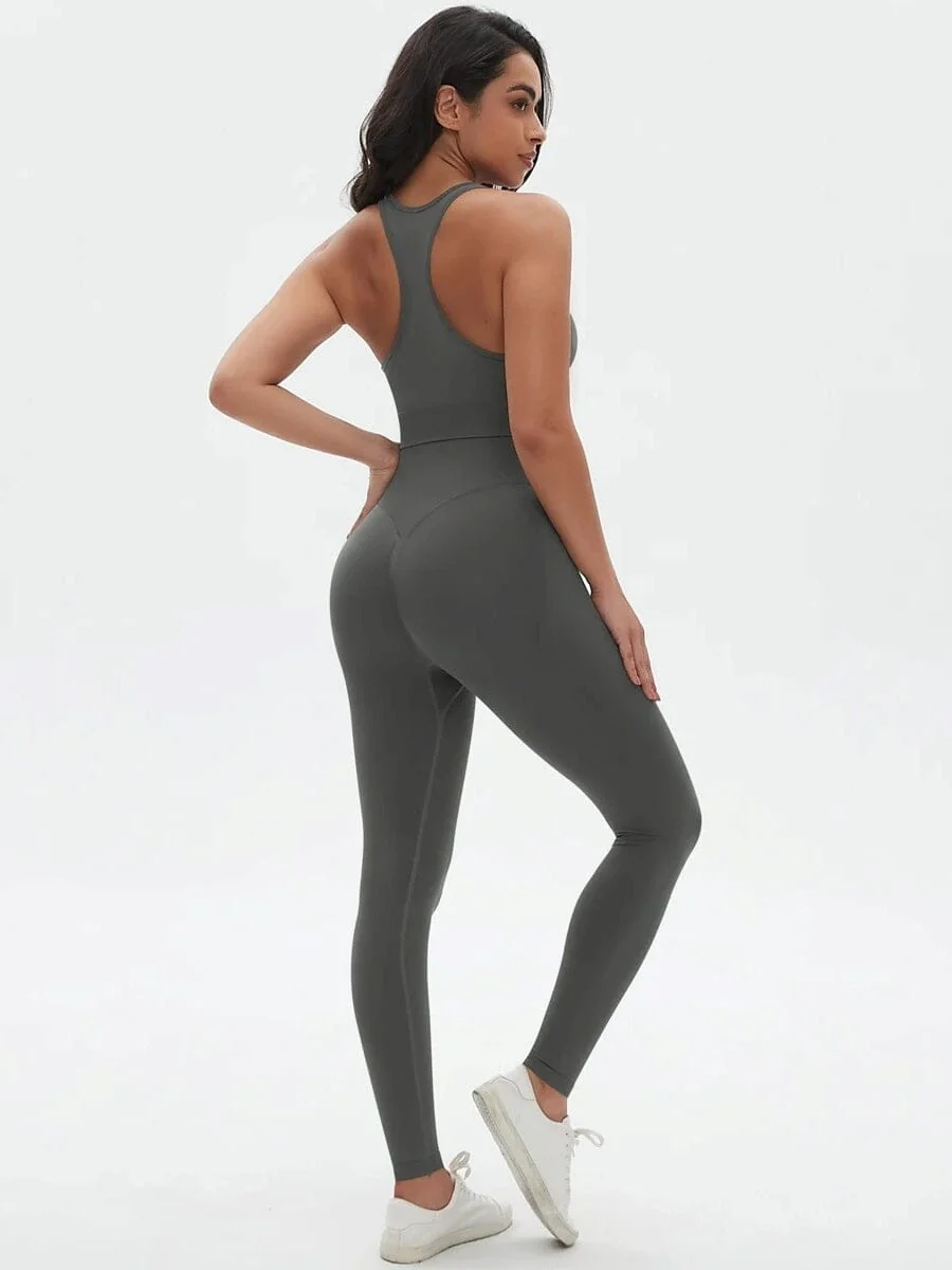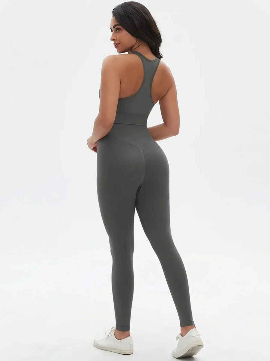 Coupe flatteuse : La coupe ajustée de l’ensemble, que ce soit au niveau de la brassière ou du legging galbant, met en valeur la silhouette tout en restant confortable.