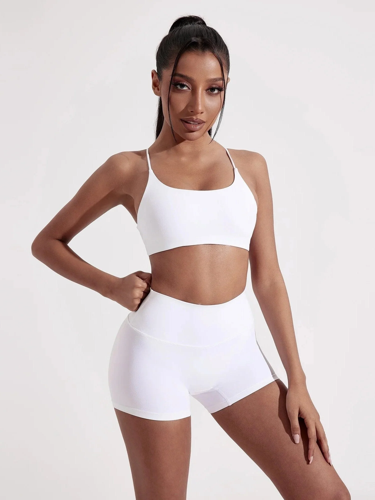 Conçu pour offrir un soutien optimal et une liberté de mouvement totale, l’ensemble de sport « Athlex » est l’alliance parfaite entre style et performance. Cet ensemble deux pièces, composé d’un brassière à fines bretelles croisées dans le dos et d’un short taille haute, est idéal pour tous vos entraînements, que ce soit à la salle de sport, en extérieur, ou pour vos séances de yoga.