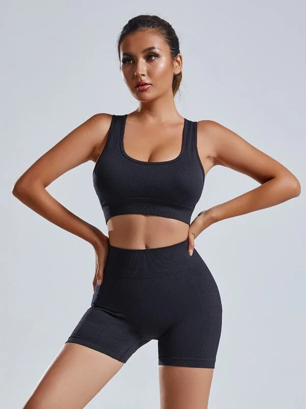 Cet ensemble de sport composé d’un short moulant et d’une brassière est spécialement élaboré pour vous offrir le confort que vous méritez tout en mettant en valeur votre silhouette. Le tissu extensible et directionnel sans couture s’adapte parfaitement à votre corps, évitant les frottements et les irritations.