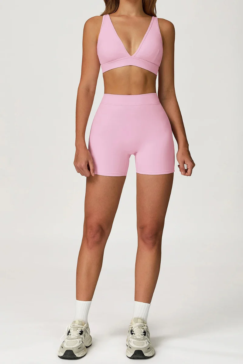 Ensemble de yoga brassière triangle et short taille haute