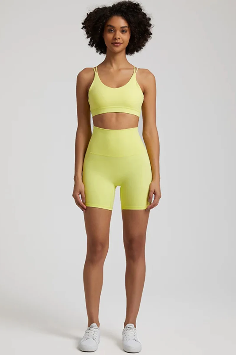 Découvrez cet ensemble de yoga conçu pour les femmes actives qui recherchent à la fois confort et élégance dans leur routine quotidienne. Composé d’un short taille haute et d’une brassière à dos croisé, cet ensemble épouse parfaitement les courbes de votre corps tout en offrant une grande liberté de mouvement. La matière stretch et respirante assure un soutien optimal lors de vos séances, que ce soit pour des postures de yoga, du Pilates ou des exercices à haute intensité.