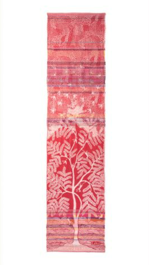 Cette étole est illustrée par un magnifique motif d’arbre de vie sur un pan et sur l’autre pan, d’un motif inspiré par le style pointilliste.