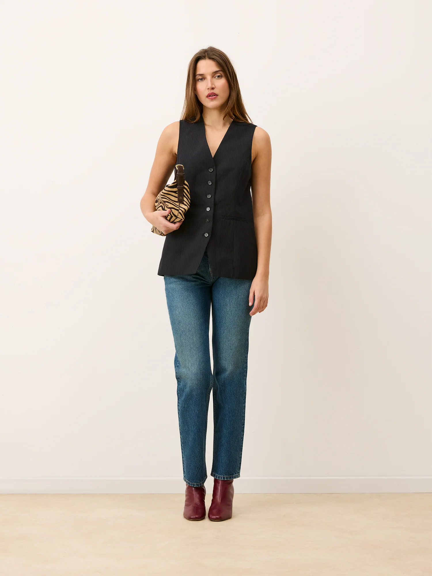 Veston d’homme à fines rayures.