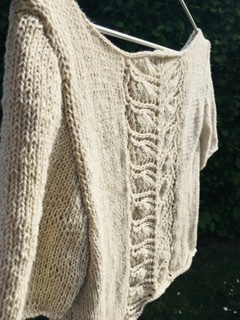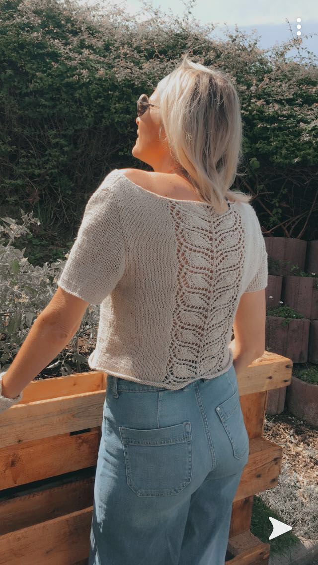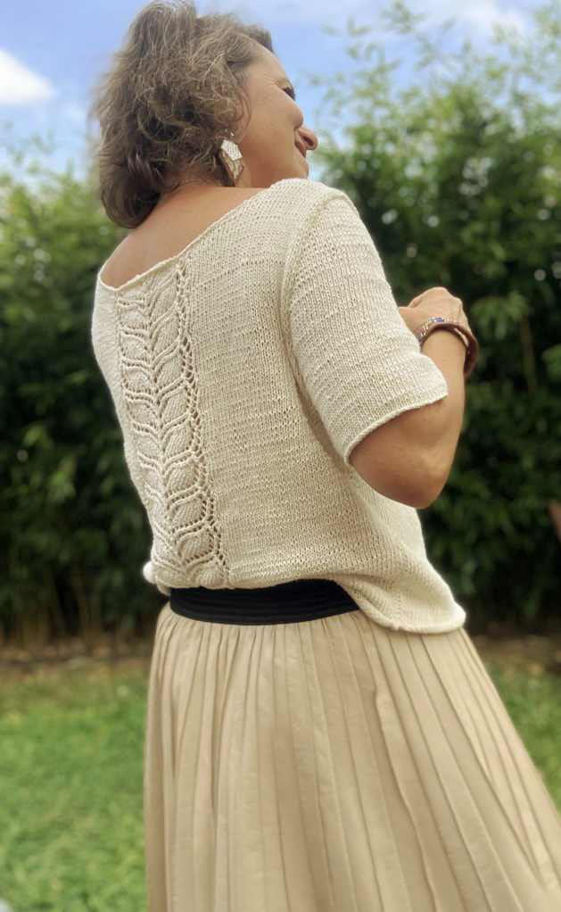 Joli petit haut écru avec motifs à l’avant ou à l’arrière. une maille fantaisie très originale.