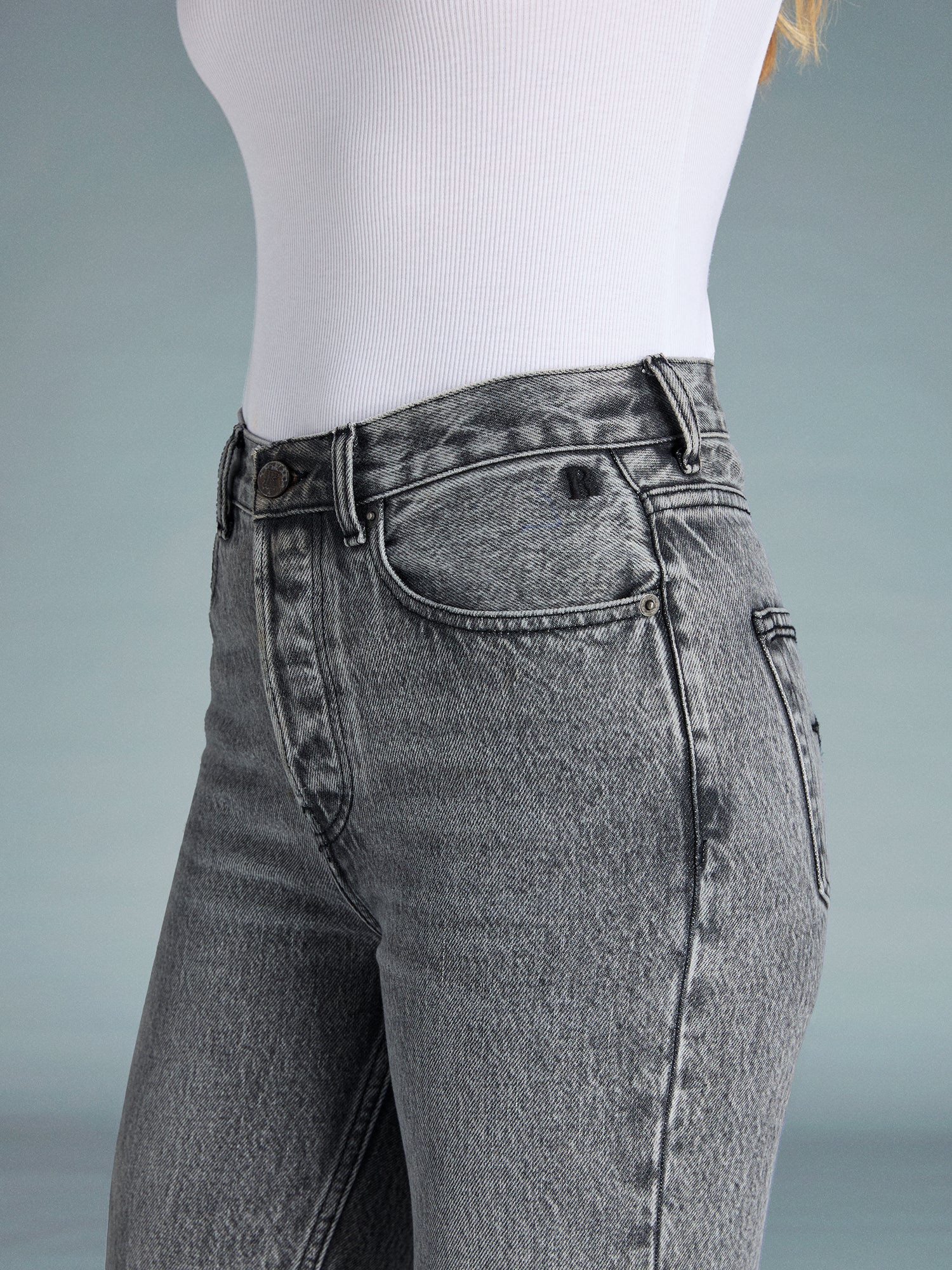 • Broderie « R » sur la poche arrière gauche