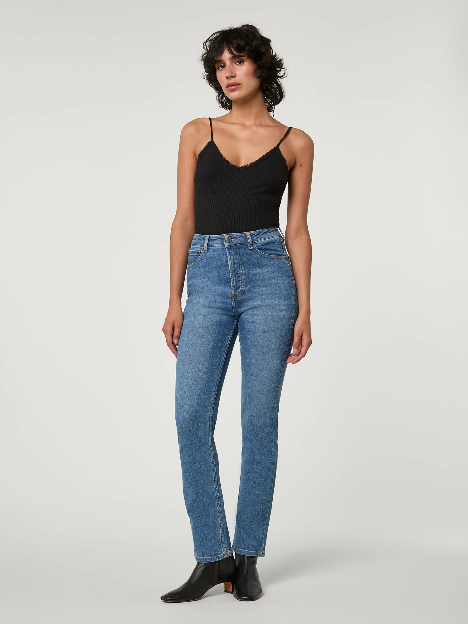 Jean droit taille haute.