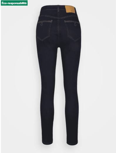 Ce nouveau Jean skinny de la marque Thought est fabriqué à partir d’un denim biologique haut de gamme. Il est entièrement certifié GOTS et OEKO-TEX®. Contrairement à la plupart des usines, celle choisie pour la fabrication de ce Jean dispose d’une laverie sur place – donc ce jean a une très faible empreinte carbone. Le lavage se fait sans chlore et sans produits chimiques agressifs. Le délavage denim foncé est, par-ailleurs, le plus écologique disponible, pour une couleur classique toute l’année.