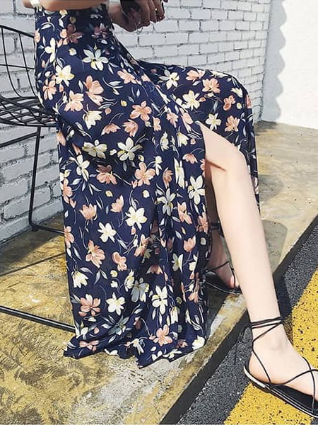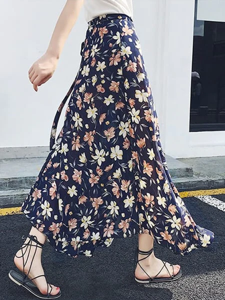Jupe longue d’hiver vaporeuse à petites fleurs