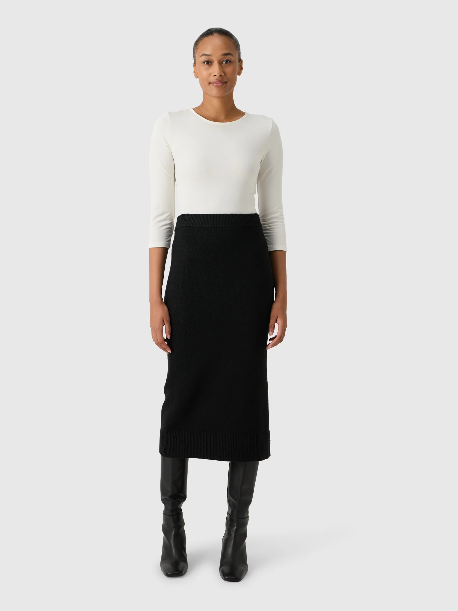 Cette jupe est un incontournable de votre garde-robe cette année. Almaa affine la silhouette grâce à sa coupe ajustée, tandis que sa longueur midi lui confère une élégance intemporelle. La fente latérale ajoute une touche de sophistication et garantit la liberté de mouvement. La maille côtelée et la taille élastique assurent un confort tout au long de la journée. Associez Almaa à notre pull Fleur pour un look chic ou à notre pull Juules pour une dose supplémentaire de chaleur.