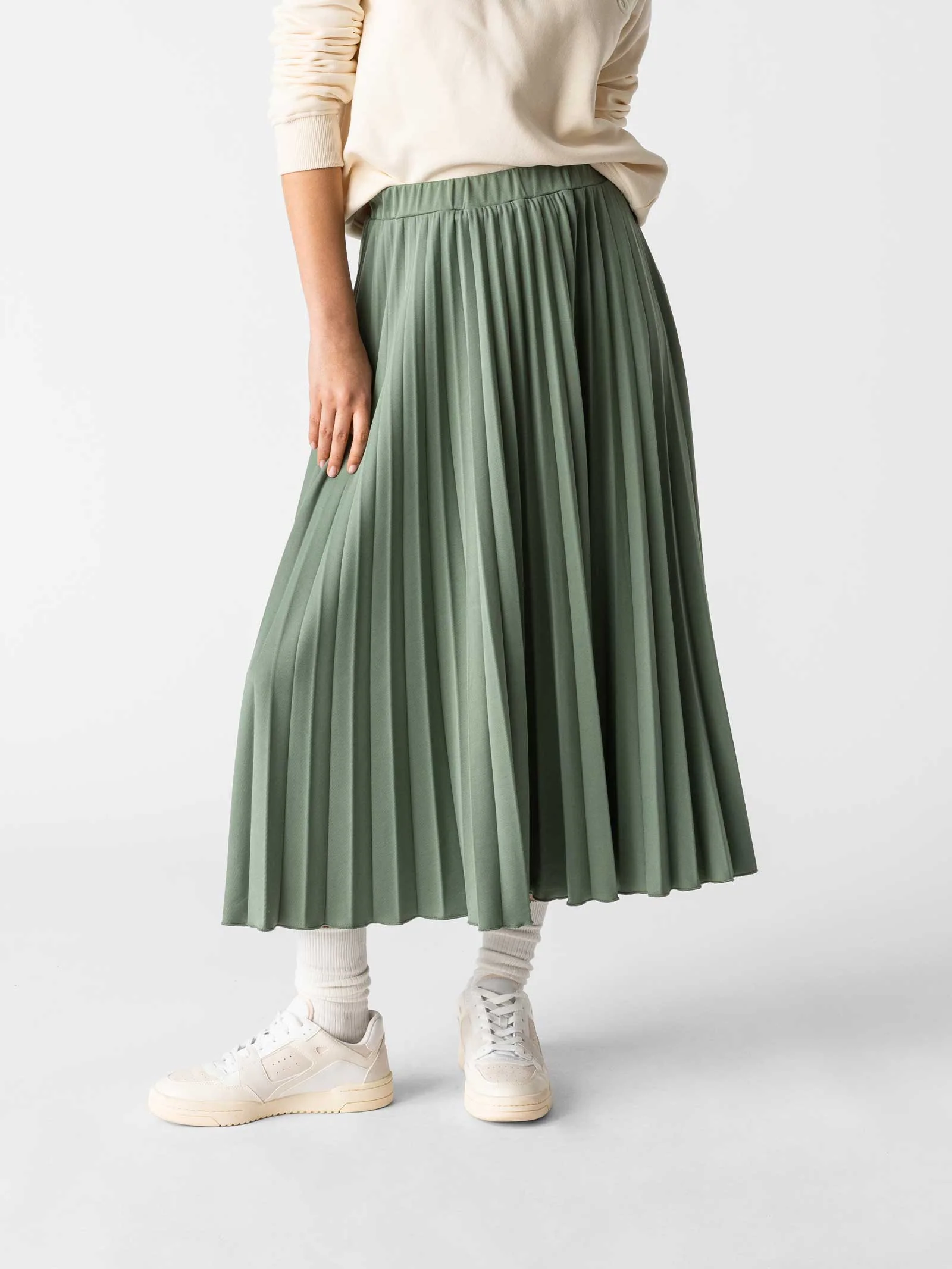 Notre jupe Beccii est une jupe plissée élégante et tendance de longueur midi (Longueur 75 cm). Sa large ceinture élastiquée assure non seulement un ajustement confortable, mais souligne également votre taille. La coupe trapèze confère à la jupe une élégance intemporelle, tandis que la matière toute douce la rend particulièrement agréable à porter.