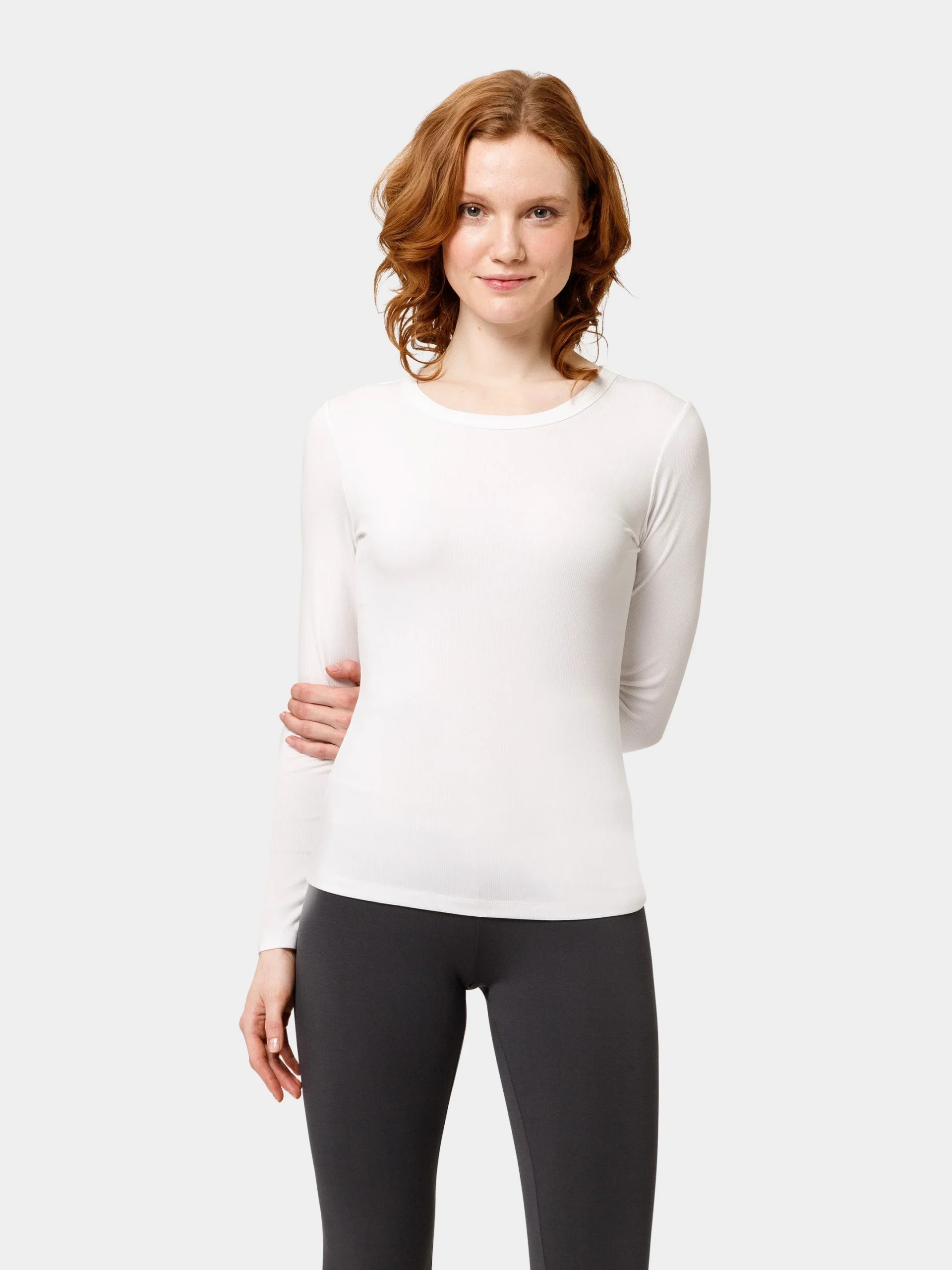 – T-shirt manches longues Ryliee : tissu côtelé léger en bambou mélangé, coupe ajustée