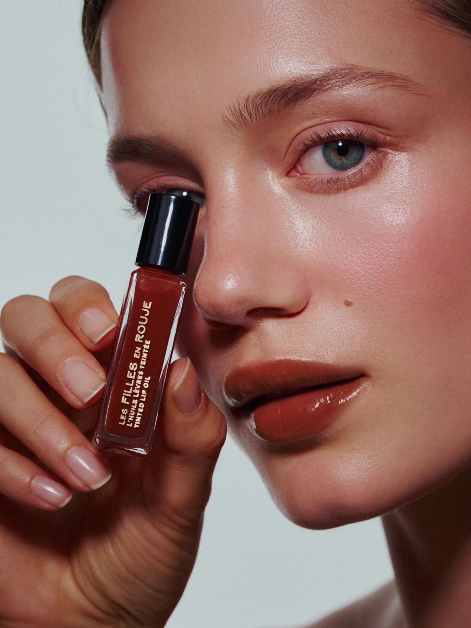 Les Huiles Lèvres Teintées in a Trio Set: Sorbet Framboise, a vibrant red; Biscuit Caramel, a warm brown; Pain aux Raisins, a deep plum. Infused with peptides and Kalpariane for plumping and anti-aging benefits, as well as moisturizing plant oils, these tinted lip oils protect, nourish, and enhance the natural beauty of your lips.