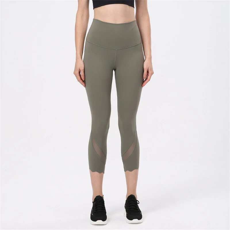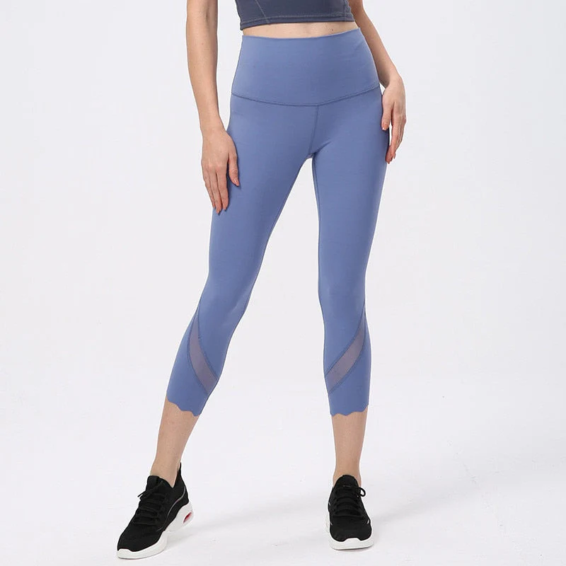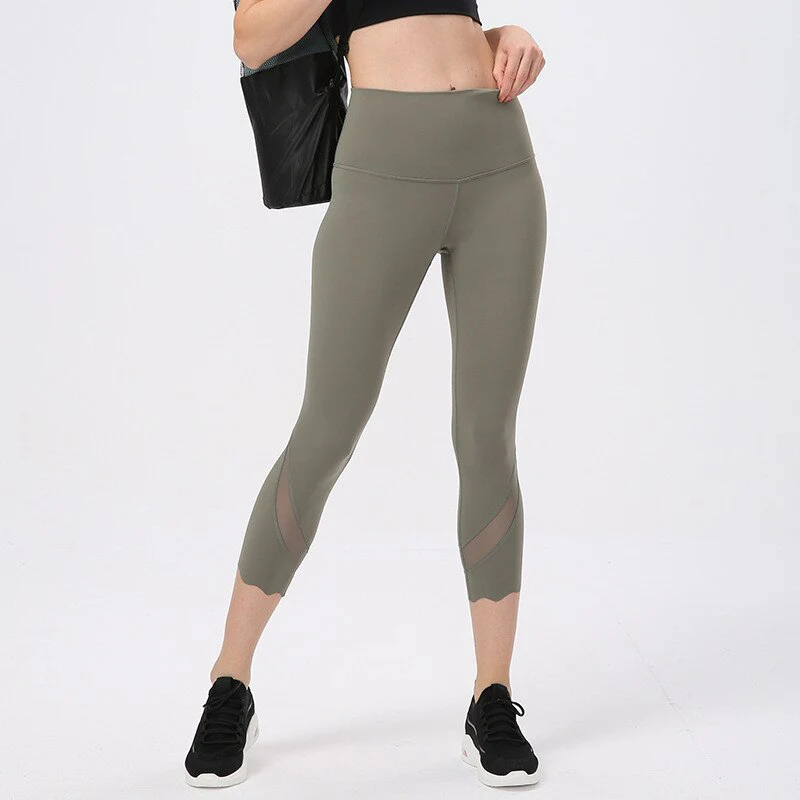 Legging de yoga mi-mollet à bandes transparentes
