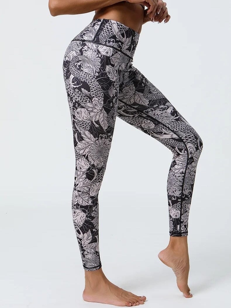 Legging de Fitness Femme à Motifs Artistiques Noir et Blanc – Élégance et Performance pour vos Entraînements