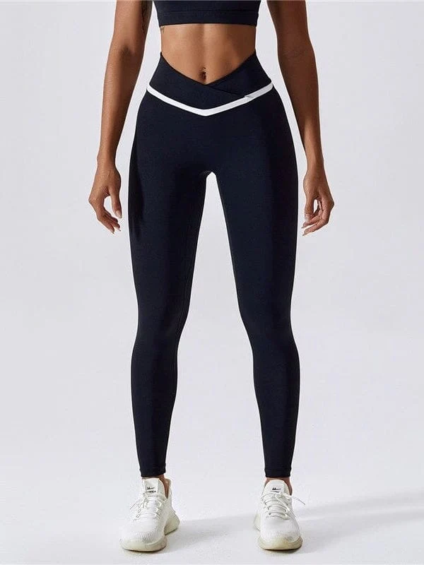 Le legging de sport à ceinture croisée et une fabrication sans couture