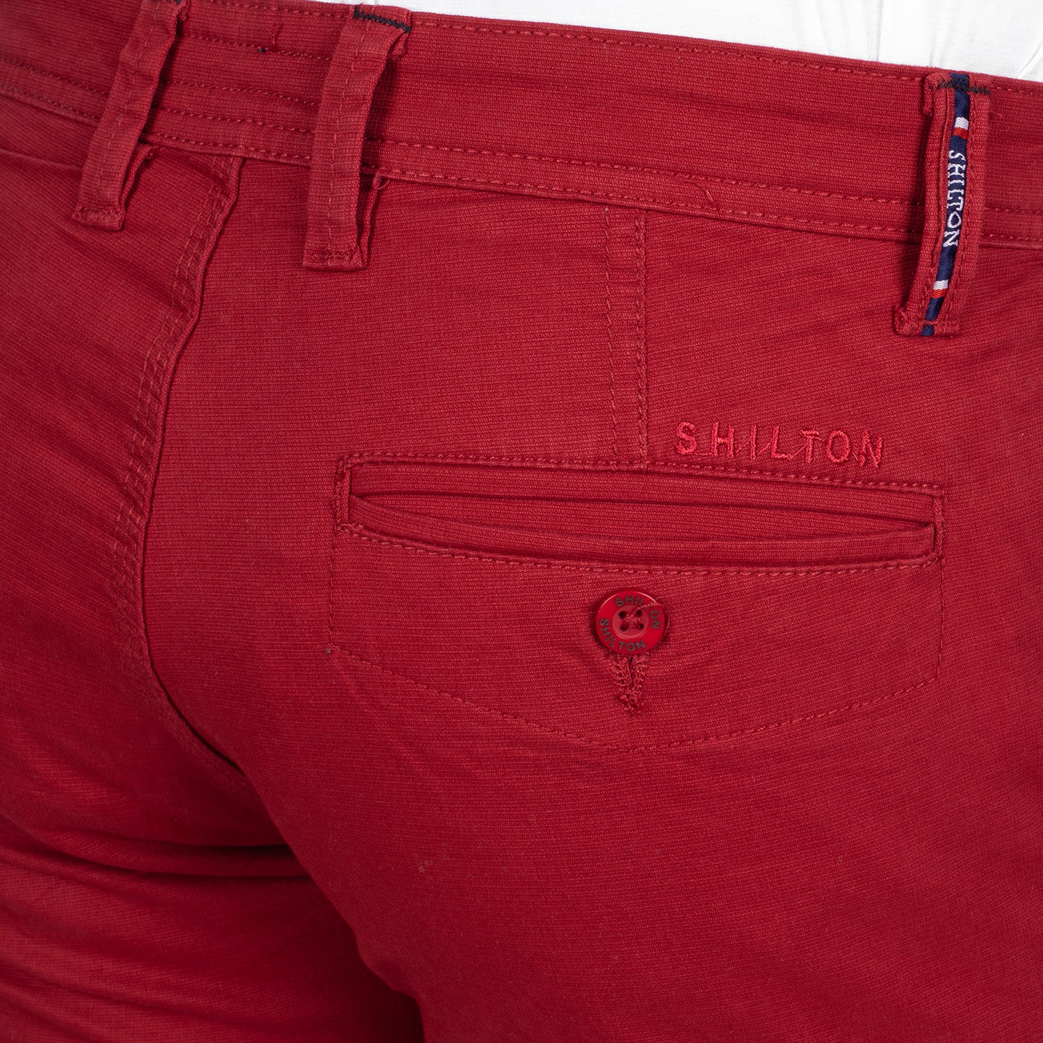 - Broderie Shilton au dessus de la poche arrière droite