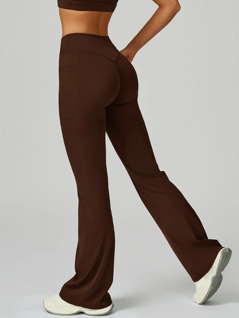 Ce pantalon de sport allie praticité et féminité avec sa coupe évasée et ses poches latérales discrètes, parfaites pour y glisser un téléphone ou une clé. Sa taille haute enveloppe la taille avec douceur et maintien, tandis que le tissu extensible offre une sensation seconde peau ultra confortable. Élégant, respirant et fluide, il accompagne vos mouvements sans contrainte, que ce soit pour vos séances de yoga, vos entraînements ou vos journées actives.