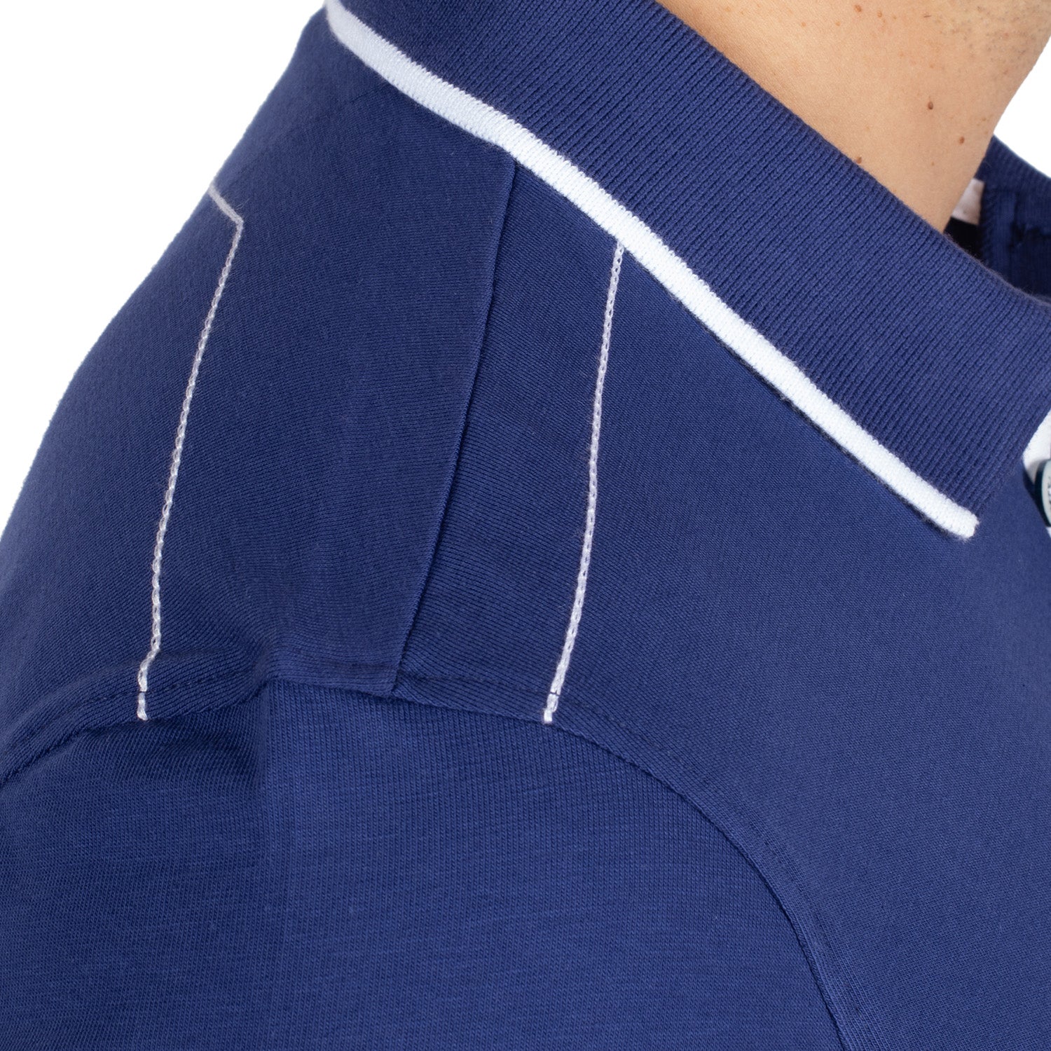 - Liseré blanc sur le bord-côte des manches et bas du col