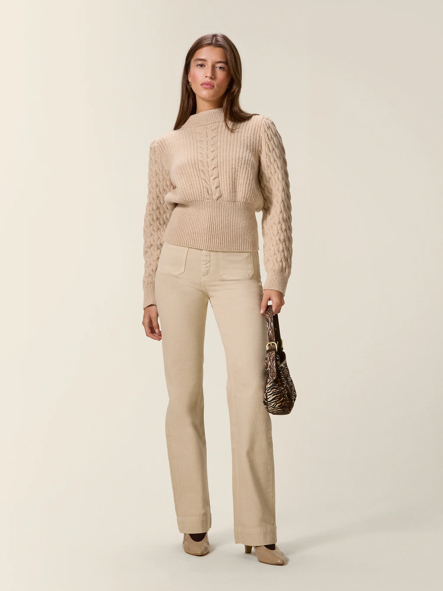 - Tricot tressé au centre et sur les manches